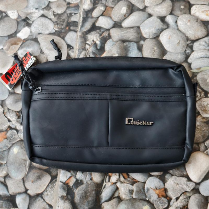 Tas Selempang Pria Quicker - Hitam Material sintetis premium, tahan lama Multi-kompartemen, muat HP, dompet, kunci, charger dll Desain elegan warna hitam cocok untuk kerja, kuliah, atau jalan santai Kondisi baru dengan tag Ukuran: Medium